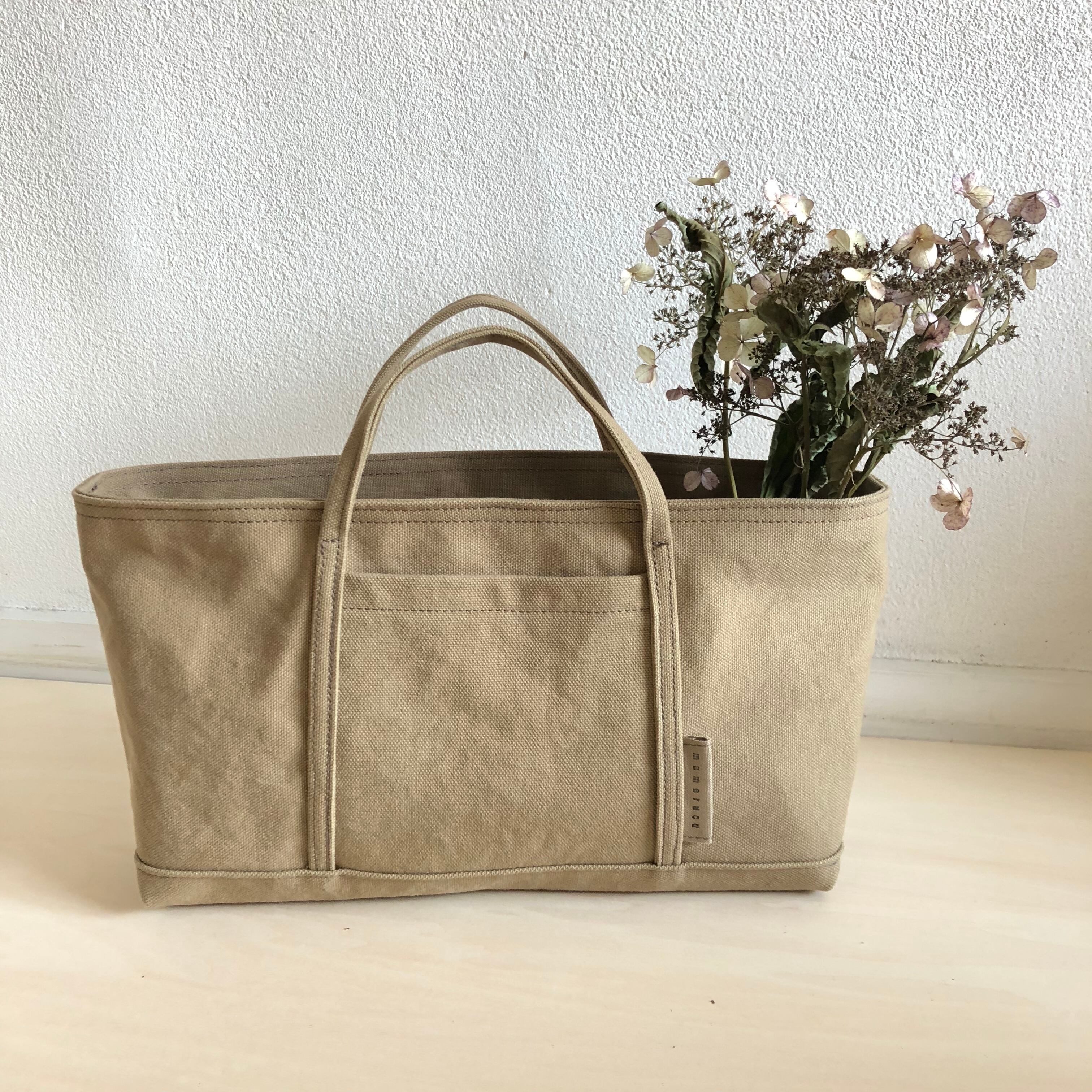 表はヴィンテージ加工された帆布を、裏地にパラフィン加工された帆布を使用していますので、しっかり自立します