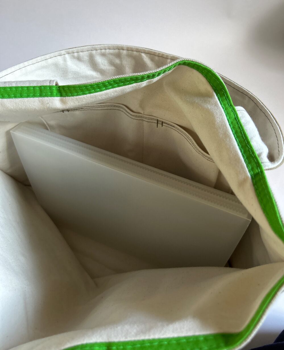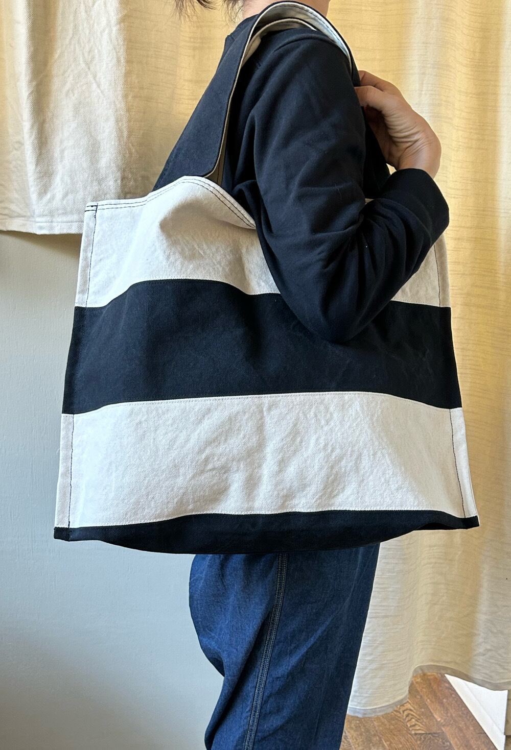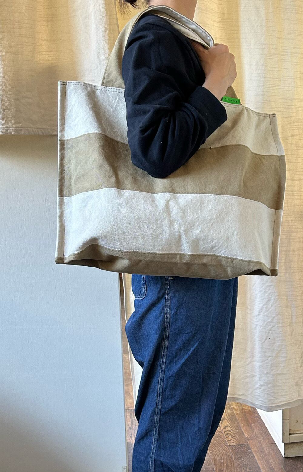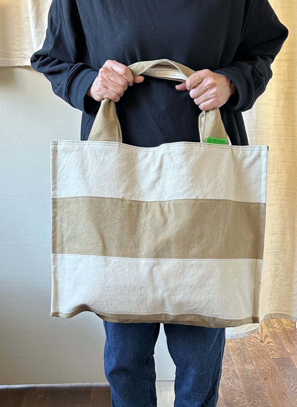 倉敷産の帆布を使って、レッスンバッグのようなトートバッグを作りました