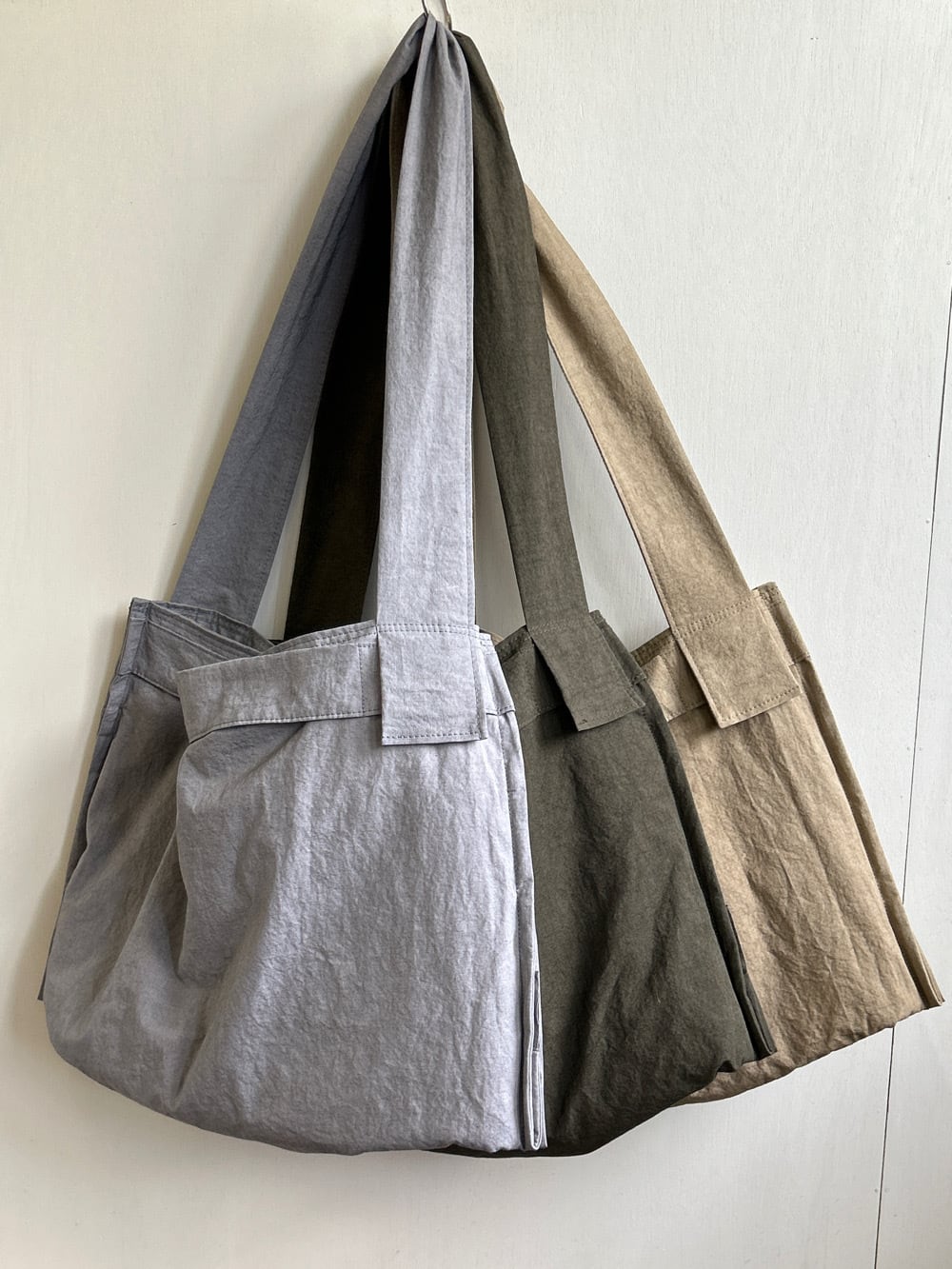 裏も表も、ハンドル持ちとショルダーバッグとしてもお使い頂ける大きめのバッグです